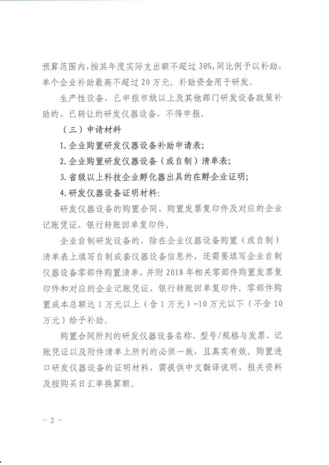 1.企業(yè)購置研發(fā)儀器設備補助申請表;