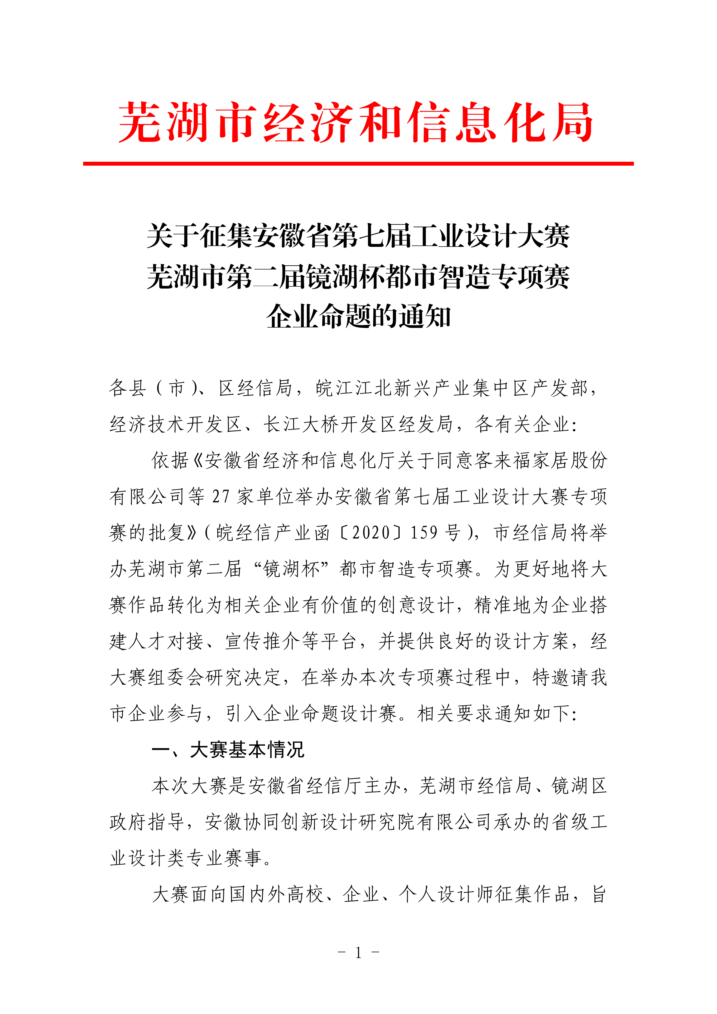 關(guān)于征集安徽省第七屆工業(yè)設(shè)計(jì)大賽蕪湖市第二屆鏡湖杯都市智造專(zhuān)項(xiàng)賽企業(yè)命題的通知