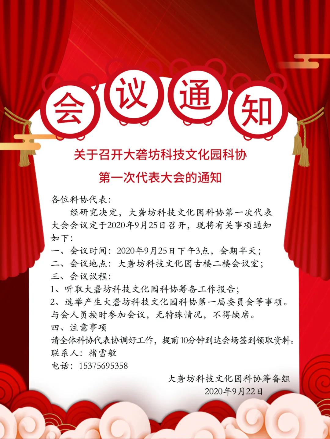 關(guān)于召開大礱坊科技文化園科協(xié)第一次代表大會的通知